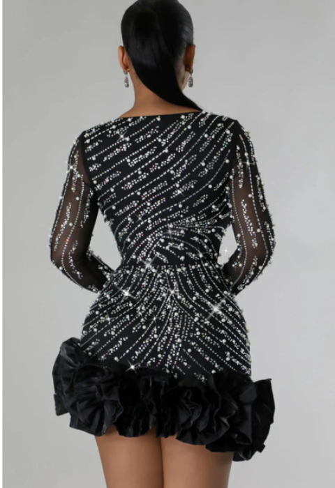 كيليا | فستان ميني ضيق مع زينة من الكريستال