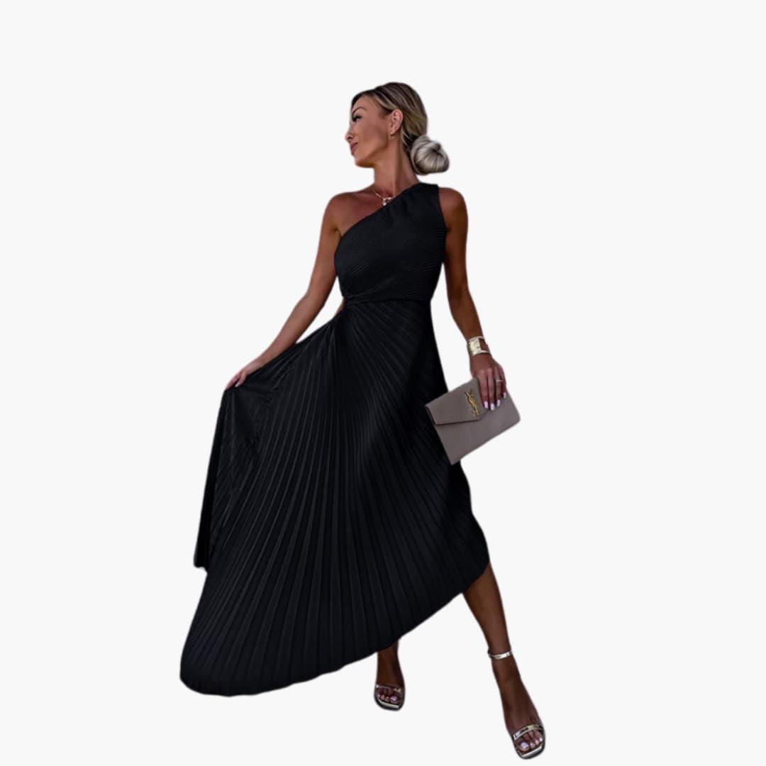 غويندولين | فستان غير متماثل أنيق بأطراف رقيقة