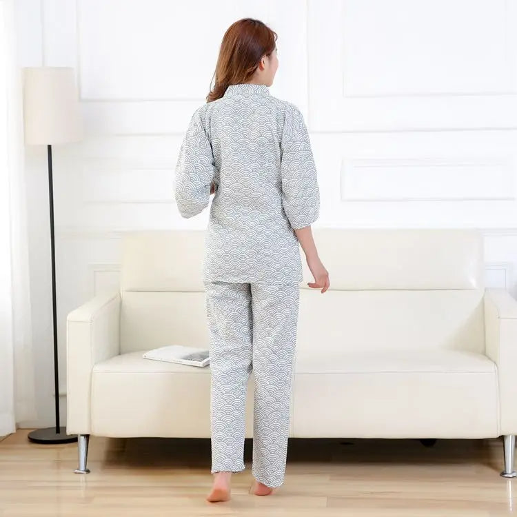 مستوحى من التقليد الياباني، يقدم هذا البيجاما تصميمًا واسعًا لحرية حركة مثالية. قماشه الناعم يضمن ليالي هادئة وممتعة.