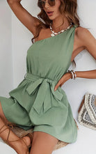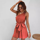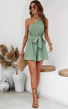 تقدم هذه البدلة القصيرة ذات الكتف الواحد قصّة حديثة وأنيقة. مثالية للأيام الحارة، تجمع بين الراحة والأناقة. يضيف تصميمها غير المتناظر لمسة من originality إلى خزانة ملابسك.