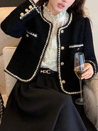 تضفي هذه السترة القصيرة لمسة من الرقي على كل زي. تفاصيلها المزينة باللؤلؤ وقصتها المهيكلة تبرز الأنوثة برقة. مثالية لمظهر أنيق في المكتب أو في المناسبات الخاصة.