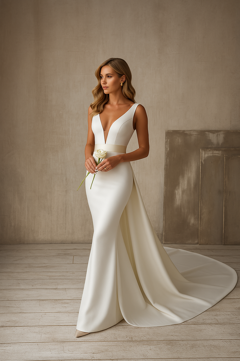 PROČ ZVOLIT DLOUHÉ SVATEBNÍ ŠATY S HLOUBKOVÝM VÝSTŘIHEM DO V BEZ RUKÁVŮ A VLEČKOU?