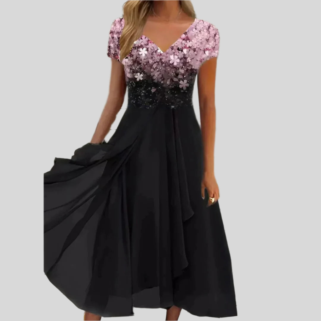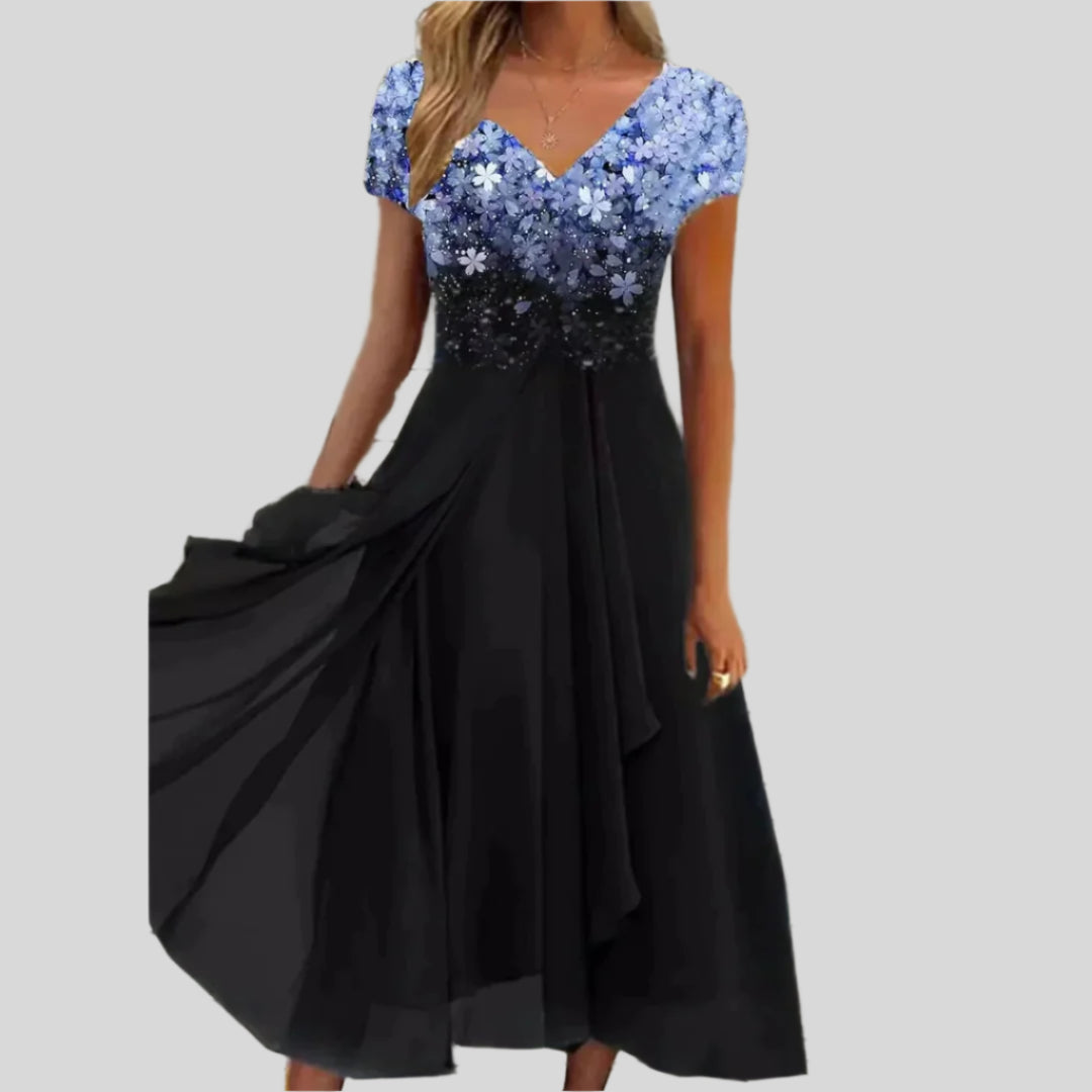 Tento midi šaty mají moderní květinový design, ideální pro různé příležitosti. K dispozici v několika barevných kombinacích, přizpůsobí se všem stylům. Navrženo tak, aby nabízelo pohodlí a eleganci, je ideální pro slunečné dny.