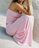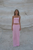Blandine | Ensemble Rayet Lyserød – Top Uden Stropper Og Lang Nederdel