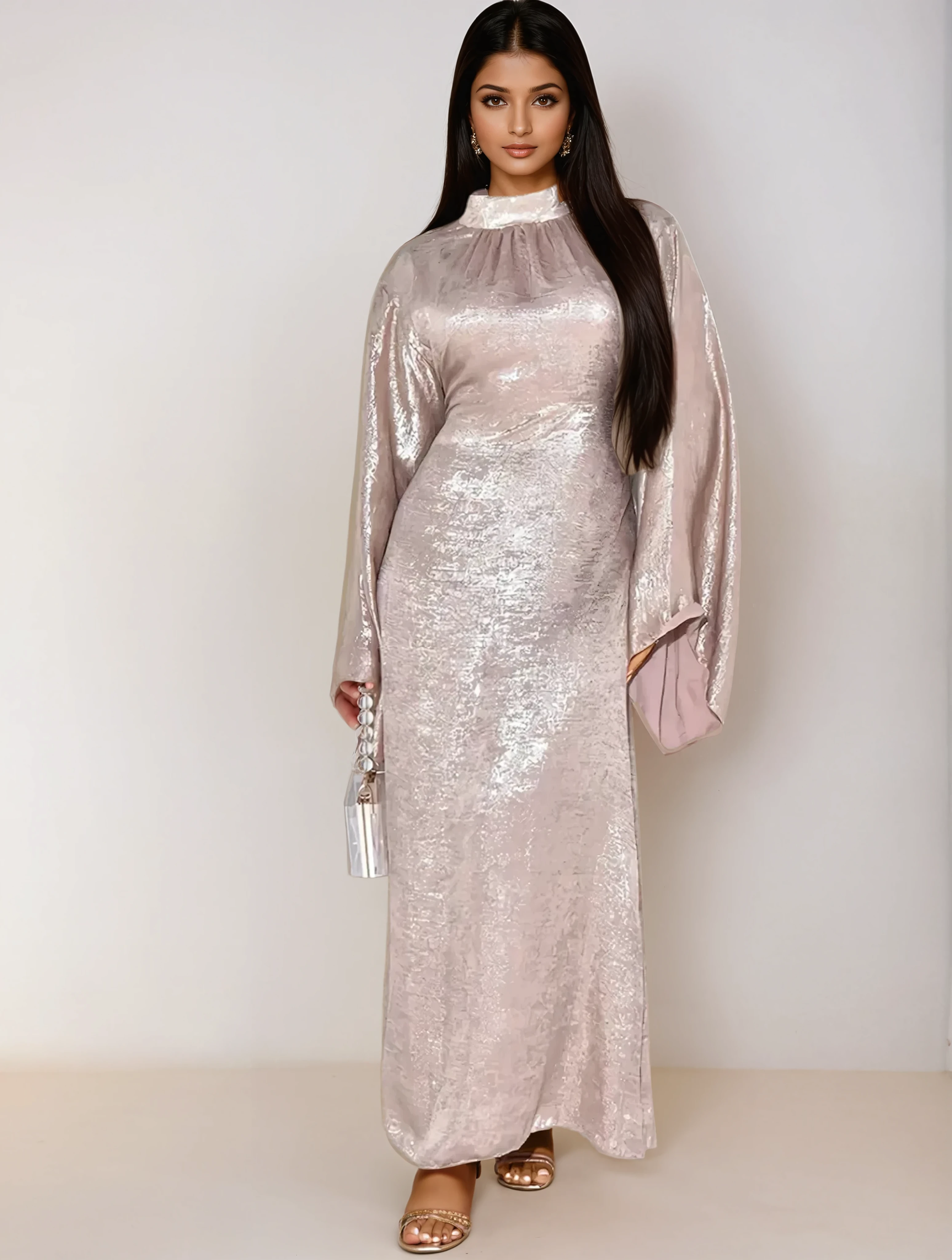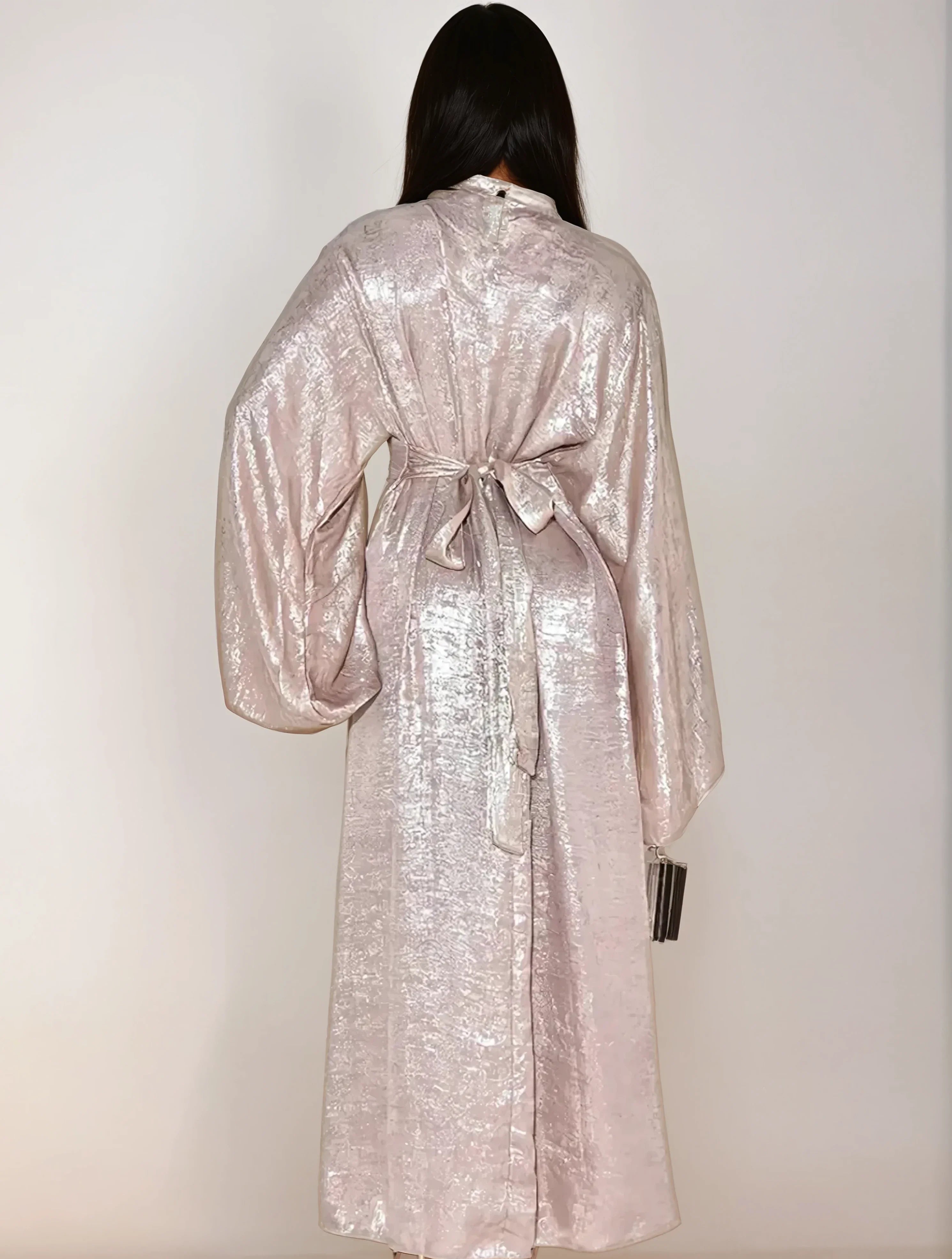 Αυτή η ρόμπα αμπαγιά προσφέρει μια ρέουσα και εκλεπτυσμένη σιλουέτα. Το ελαφρύ και αδιαφανές ύφασμά της εξασφαλίζει μέγιστη άνεση. Ιδανική για όλες τις περιστάσεις, συνδυάζει τη μετριοφροσύνη με το στυλ.