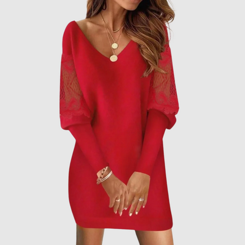 Léa | Lyhyt Mekko Pitkillä Hihoilla V-aukolla