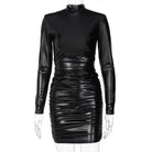 Tämä tiukka, korkeakauluksinen mekko yhdistää eleganssin ja rohkeuden. Sen vartalonmyötäinen leikkaus korostaa siluettia tyylillä. Täydellinen ulkoiluihin ja iltamenoihin.