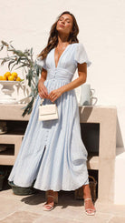 שמלות הקיץ הארוכה הזו מציעה צווארון בצורת V עמוק עם שרוולים קצרים, ומספקת מראה נשי ונינוח. החיתוך הצמוד במותן והחצאית הזורמת מבטיחים נפילה מחמיאה ונוחות רבה. מושלמת לחוף הים, לטיול בעיר או למסיבת קיץ.