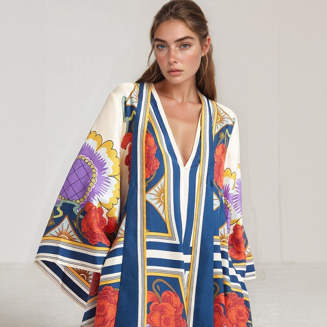 • דוגמאות פרחוניות וגיאומטריות נועזות לסגנון אמנותי ייחודי.
