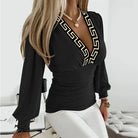 Lydia | Chic Blúz Hosszú Ujjakkal – V-alakú Gallér és Gondos Befejezés