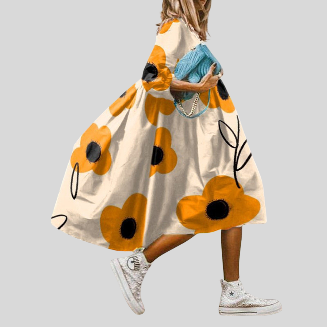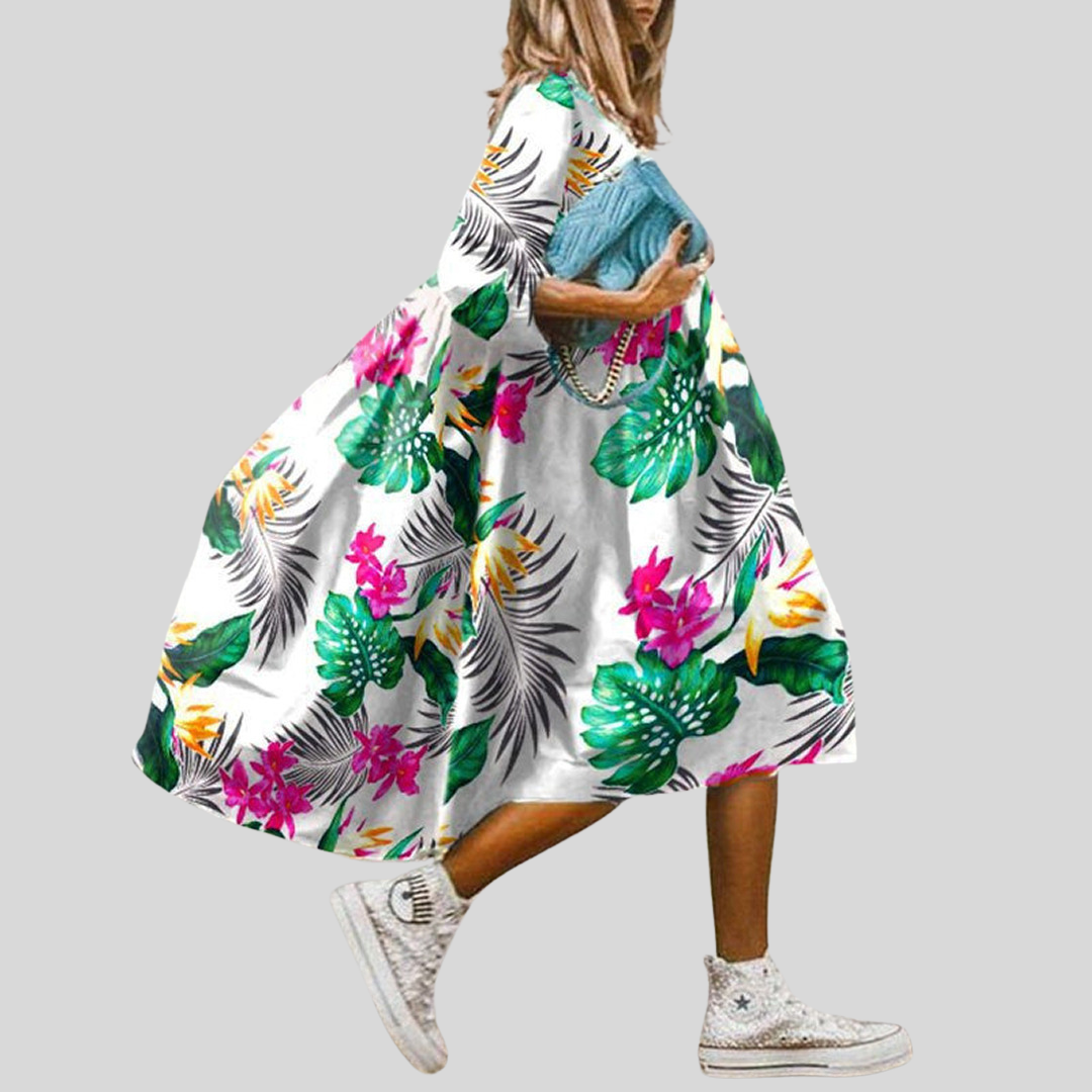 Ez a midi ruha bohém virágmintával rendelkezik. Több színben és méretben elérhető. Tökéletes a nyári napokra.