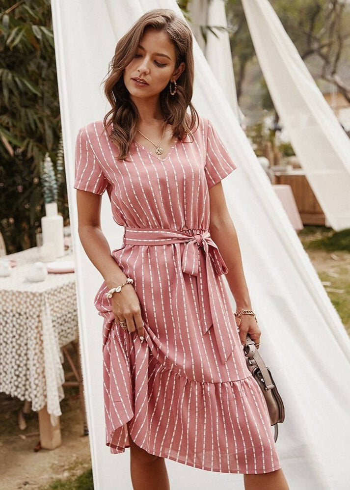 ナハラ | 縦縞のドレス – シンプルでエレガントなカット
