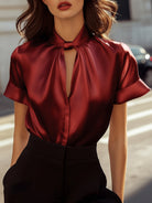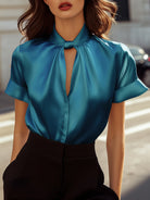 Denne elegante blusen tiltrekker seg med sin moderne utringning prydet med en subtil åpning. Den flytende silhuetten passer til alle kroppstyper, og tilbyr komfort og raffinement. Allsidig, den kan brukes både til formelle anledninger og til uformelle stunder.