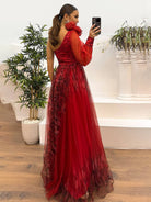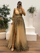 Adeline | Lange Jurk Met Bloemenprint In Gevoerde Tule – Elegantie En Verfijning