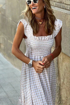 Met zijn tijdloze ruitpatroon en smock taille accentueert deze jurk de silhouette met elegantie. De vloeiende snit zorgt voor optimaal comfort, ideaal zowel voor dagelijks gebruik als voor meer formele gelegenheden. Een perfecte balans tussen stijl en lichtheid.