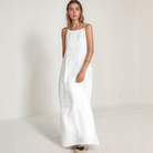 Ta długa sukienka bez rękawów została zaprojektowana, aby połączyć komfort i elegancję w sezonie letnim. Jej zwiewny krój towarzyszy ruchom z wdziękiem, podczas gdy jej minimalistyczny design zapewnia dużą swobodę stylu. Idealna na leniwe wakacje, spędzanie dnia w mieście lub uczestnictwo w letnim wydarzeniu.
