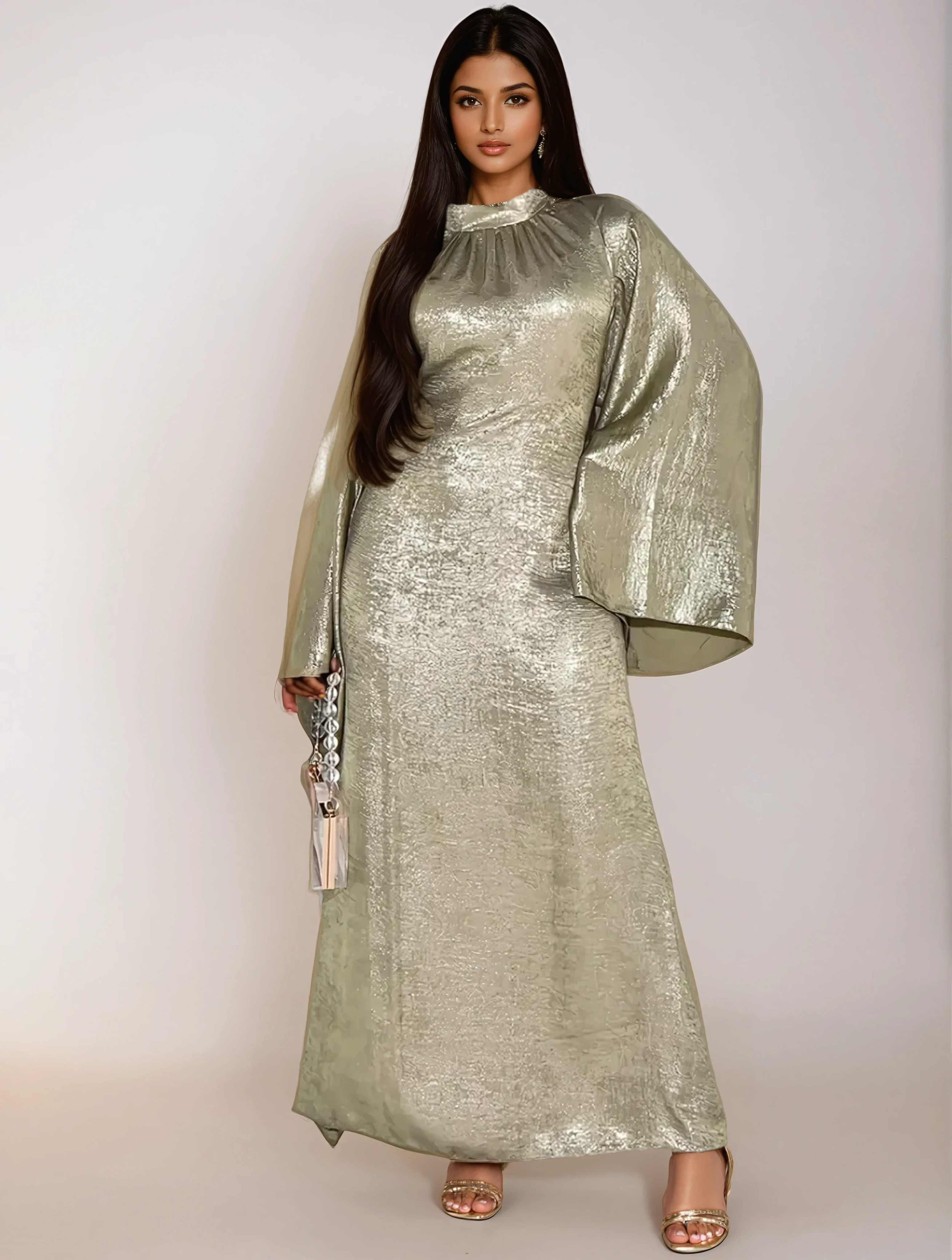 Show off a graceful look with this light green abaya dress that is both fluid and contemporary. Its long cut, opaque fabric, and soft color make it an ideal choice for your special events, receptions, or dressy evenings.