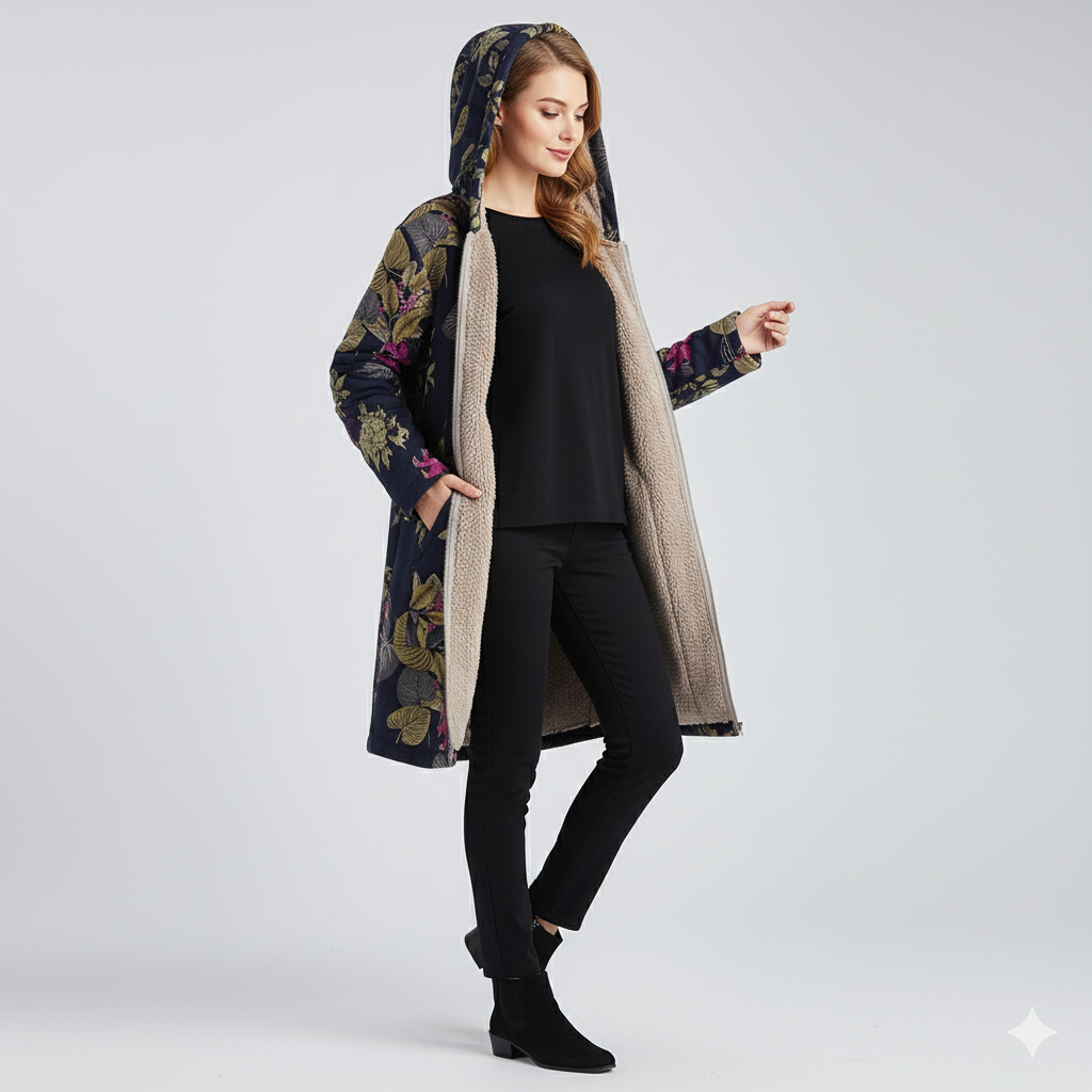 Sanae | Zimná bunda s kapucňou pre ženy — Jemné teplo a kvetinový štýl
