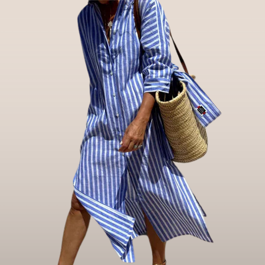 Zina | Prúžkovaná voľná a ľahká košeľová šaty