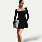 Táto šaty s hranatým výstrihom stelesňuje dokonalú rovnováhu medzi jednoduchosťou a sofistikovanosťou. Jej štruktúrovaný strih lichotí siluete, zatiaľ čo dlhé rukávy pridávajú dotyk nadčasovej elegancie. Ideálne na formálne príležitosti alebo elegantné večery.