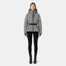 Denna vinterjacka kombinerar komfort och sofistikering tack vare sin unika grafiska design och figursydda passform. Den eleganta bältet framhäver silhuetten samtidigt som den erbjuder optimalt skydd mot kylan. En chic och modern modell, perfekt för att möta vintersäsongen med stil.